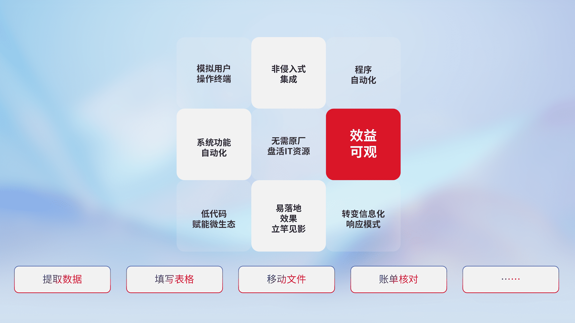 RPA机器人开发服务可解决客户大量重复性数据核对工作,帮助用户设计好使用规则,流程自动化机器人模拟工作人员工作流程自动化作业。